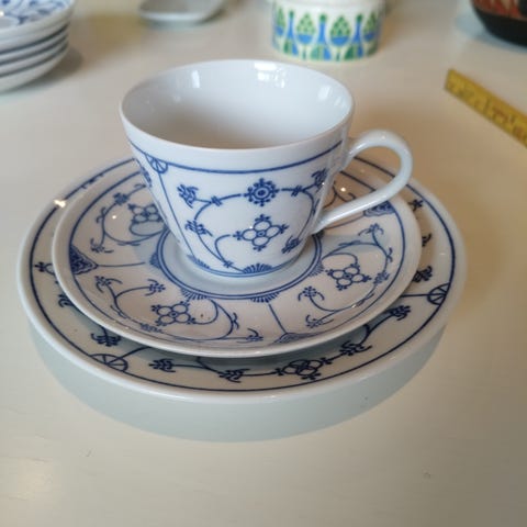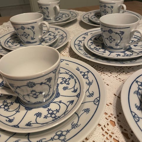 SaNydelig, eldre blåmønstret servise i porselen fra Jäger Eisenberg.