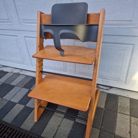 Selger 2 tripptrappstoler. De er malt sorte og har justerbar sitte- og fotstøtte. Masse bruk igjen. Selges for 500,- stk.