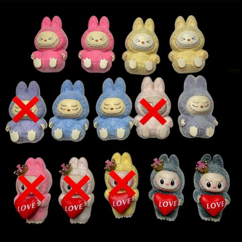 Har 2 sett med 11 forskjellig mini-labubu fra serien yoga selges kr 300,- pr.sett.