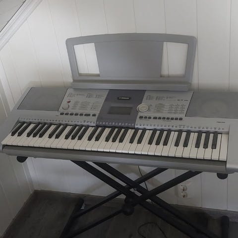 Yamaha PSR-295 keyboard selges. Inkluderer Morgan X-stativ for støtte og et separat notestativ. Må hentes.