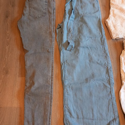 2 par ONLY bukser i beige corduroy materiale, størrelse 38 for kvinner. Bukser med vanlig passform og lommedetaljer, laget i et mykt og ribbet stoff. Prisen er pr stk. 500.- om du kjøper begge 😉