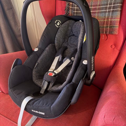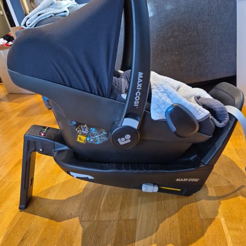 Maxi-Cosi bilsete til baby med kapasitet på opptil 13 kg. Setet er designet for å gi sikker transport av små barn i bil. Inkluderer sikkerhetsbelter og tilbehør for montering. Brukt til to barn. Ingen kollisjon. Adapter til vogn følger med. Passer Fox og Bugaboo.
