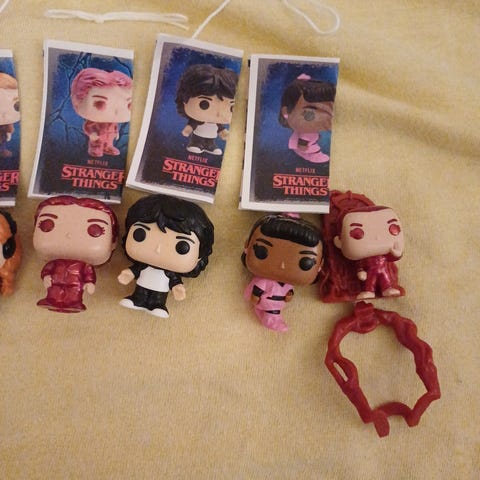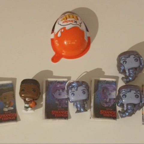 Selger flere Kinder Joy Stranger Things figurer, inkludert sjeldne Upside Down varianter, samt uåpnede Kinder Joy egg.
