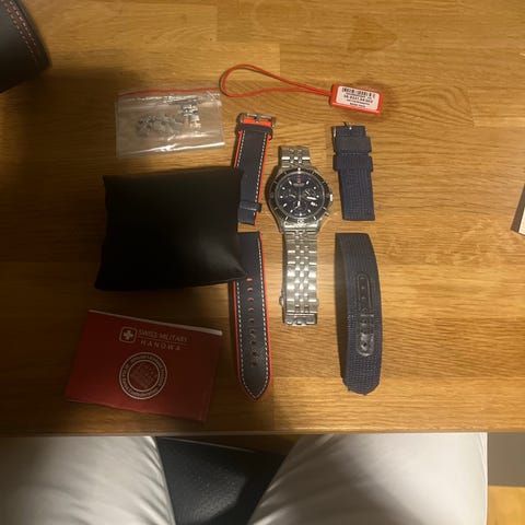 Swiss military hanowa kronograf selges, sort skive, digger denne klokken.