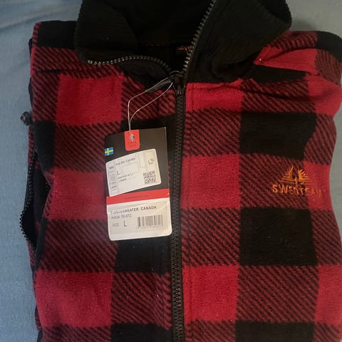 Fleece genser i størrelse M for herre. Genseren er svart og laget av fleece materiale, med glidelås i front og høy hals.