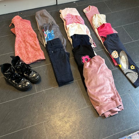 28 plagg. Blant annet nesten ubrukt vinterjakke. Bergans bukse, hummel bukse, treningsett