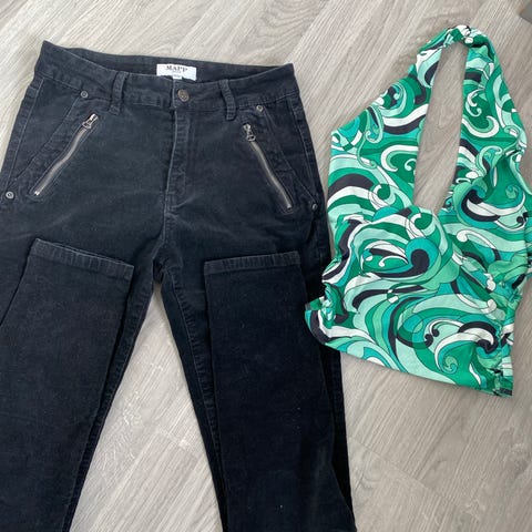 Superkule flarejeans med god strech fra Mapp! Buksen er wide pants og har glidlåslukning og knapp i front. Stikklommer.