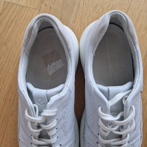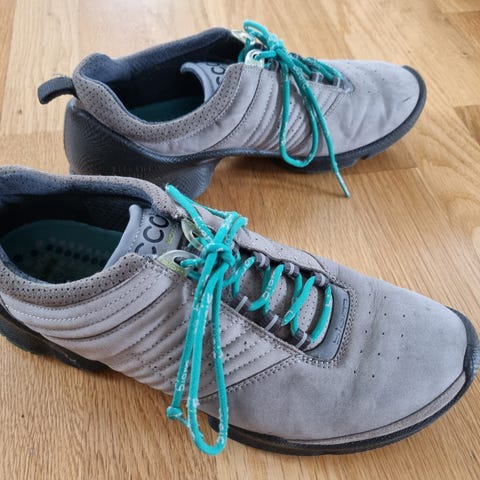 ECCO Sneakers joggesko i størrelse 38, svart farge. Skoene har GORE-TEX membran som gir vanntetthet og pusteevne. Materialet består av en kombinasjon av tekstil og syntetiske materialer. Egnet for daglig bruk og utendørs aktiviteter.strammesnøring og sitter godt på foten og underlaget. Brukt bare et fåtall gangen så fremstår veldig lite brukt. Ingen skader eller slitasje. Ble litt trang ene skoen tilmed så derfor jeg selger de rimelig. Selges kr 450,-