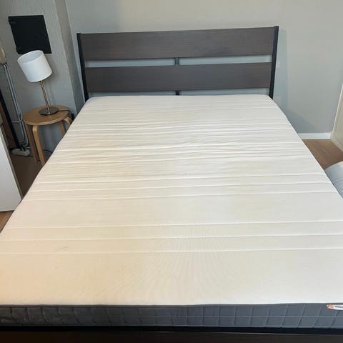 Uttrekkbar dagseng med to madrasser. Enkel overmadrass til enkelseng kan følge med. Kan muligens være behjelpelig med levering helgen uke 3 i område Fredrikstad/Moss