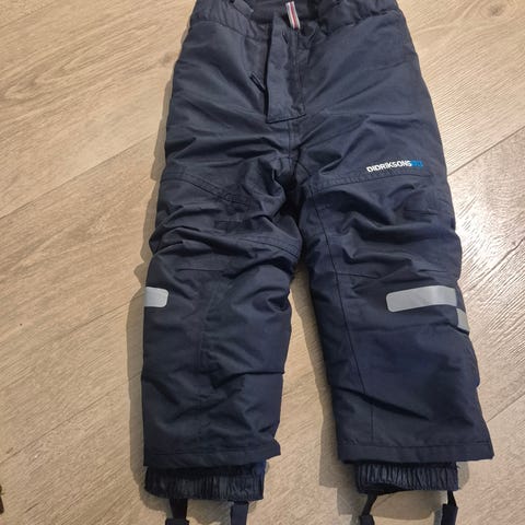 Kjempegod vinterbukse brukt av ett barn. Gode justeringsmulighetene over skuldrene gjør at den kan brukes over flere sesonger.