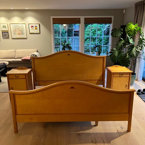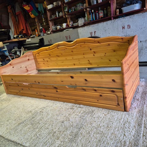 Selger to nydelige antikke senger brukt på barnerom. Du kan sove komfortabelt i dem hvis du er under 165 cm. Kan også brukes som daybed. Fra Sogn på 1880-tallet. Veldig god stand. Selges for 3000 for én, 5000 for begge. De er mer eller mindre identiske, men den ene har litt høyere plassering av madrass. Dette kan enkelt justeres.
