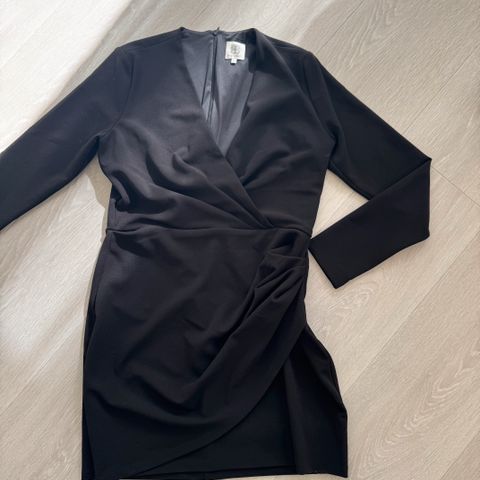 Kjolen har en enkel design med en dekorativ knappdetalj foran og kort erme.