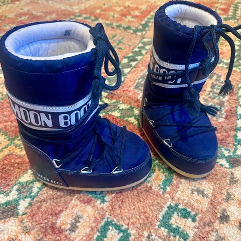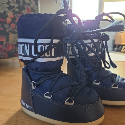 Lite og pent brukte Moon Boot vintersko i størrelse 35. Kan hentes i Bergen eller på Geilo etter avtale.