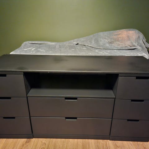 Nordli kommode fra IKEA, malt i Nordic Breeze fra Jotun selges. 2x3 skuffer. Noen små merker i malingen på topplata. Topp hvis man også har soverom i Nordic Breeze eller har lyst til å male kommode i samme farge som rommet!