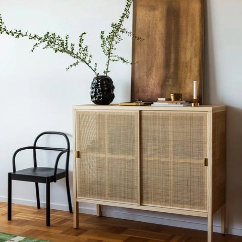 Reolen har 4 skuffer med push åpning, samt 2 skyvedører.