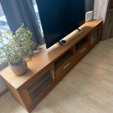 Svært pent brukt Vihals tv-benk selges. Kjøpt høsten 2025. Står pt. på hjul, 7 cm opp fra gulvet.