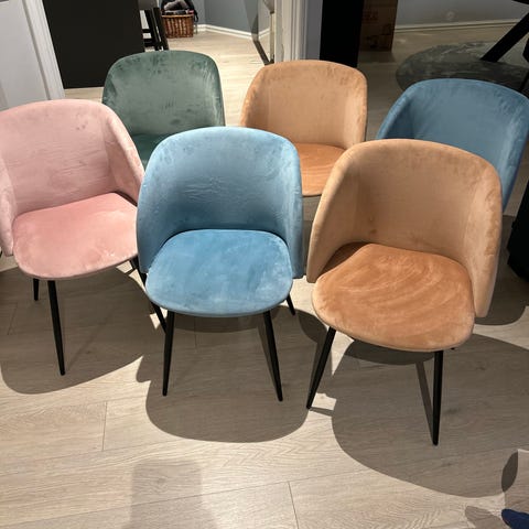 Har 6 stk. spisestoler i gult (velour look) fra Bohus