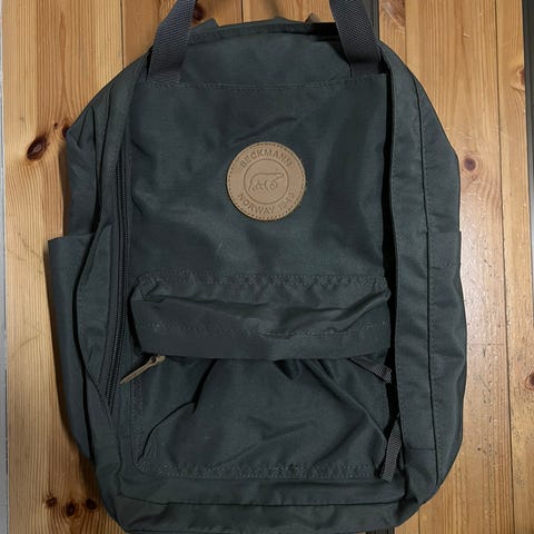 Rains ryggsekk, designet for unisex bruk. Ryggsekken har et moderne utseende med to justerbare stropper foran og et romslig hovedrom for oppbevaring. Sekken er lite brukt.