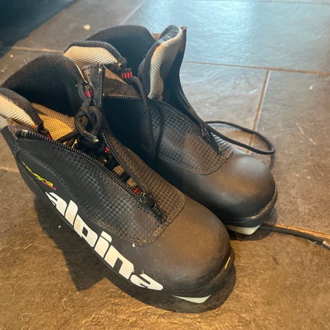 Alpina langrennsko i størrelse 36 med svart og sølv farge. Skoene har glidelås, foret og gummisåle med godt grep, egnet for langrenn.