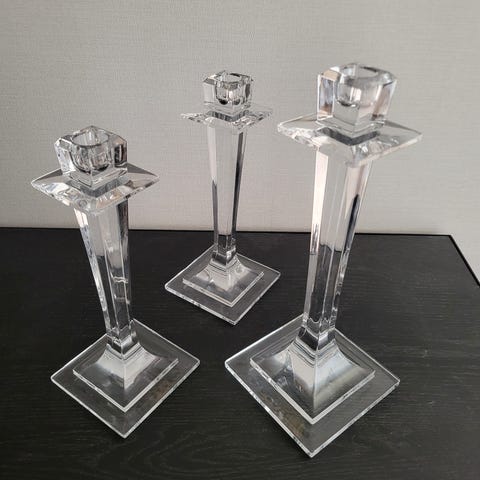Flott og stor lysestake med krystall-lignende elementer. Ca 30cm høy.