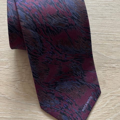 Rødt slips med mønster. Polohester. Laget for formelle eller semi-formelle anledninger, egnet for bruk med skjorter og dresser.