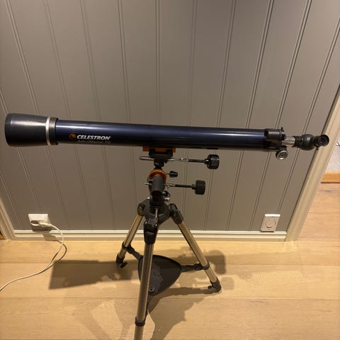 Et eldre (ca 18-19 år), lite brukt Sky-Watcher Startravel 102 teleskop/stjernekikkert med AZ3 stativ selges da det har vært i bruk svært sjeldent. Prisme og 25 mm okular følger med. Teleskopet er ideelt for nybegynnere. Brennvidde på 102 mm som gjør det egnet for stjernekikking. Div deler til kikkerten kan skaffes på nett. Kan sendes på kjøpers bekostning og risiko.