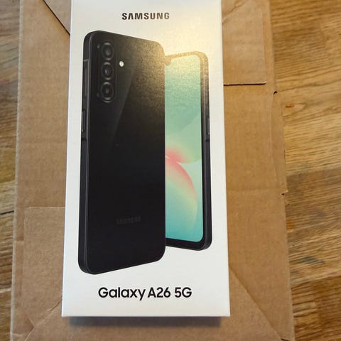Samsung Galaxy A26 5G smarttelefon i svart farge. En mobiltelefon med 5G-støtte, designet for generell bruk.