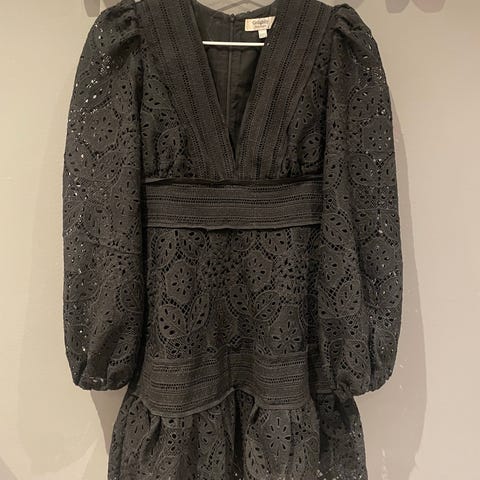Bare brukt et par ganger. Selger billigere da den ene sømmen som belte skal sitte inne i er ryket,men kan fint sys på. Og en annen løs tråd ellers på kjolen. Belte kan fint festes uten denne. Se bilde.