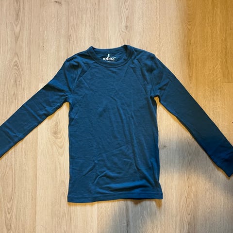Reflex ull genser / ulltrøye i blå farge, størrelse 134/140. Trøyene er kun prøvd på og ble dessverre for små. De har utside i 100 % ull og innsiden er henholdsvis akryl og bomull. Ikke vasket. Passer godt for sensitiv hud. Selges for kr 150 per stykk eller 280 samlet.