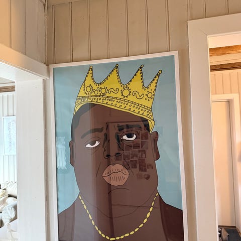 Dette er hennes illustrasjon av den ikoniske artisten/rapperen The Notorious B.I.G., Biggie, Biggie Smalls. Kjært barn har mange navn.