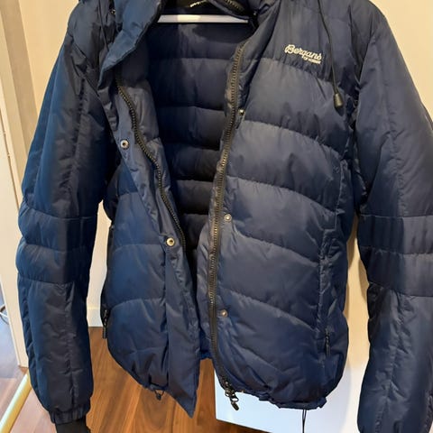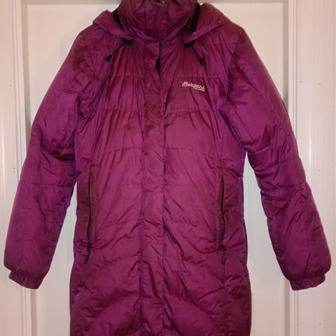 Godt brukt dunkåpe fra Bergans. Den er reparert pga rift på ryggen, men den er tett nå. Kåpen er nyvasket og klar for ny eier. Sender gjerne.