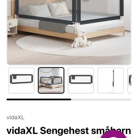 Selger sengekant/sengehest/ramme fra VidaXL til 180x200 seng som kan brukes som sengekant ved samsoving. Rammen består av 4 sider og gir en tydelig avgrensing rundt madrassen.