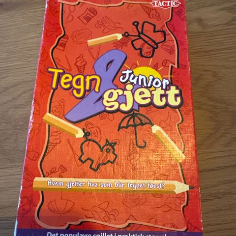 Tactic Junior Tegn Gjett brettspill med fokus på tegning og gjetting. Spillet er designet for barn fra 5 år og oppover, og inneholder brett, kort, og diverse spillebrikker. Materialene inkluderer papp og plast. Spillet kan brukes til å utvikle kreativitet og samarbeidsevner.