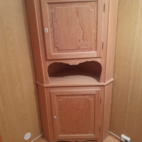Pent hjørneskap med fantastiske utskjæringer selges kr 1750.-