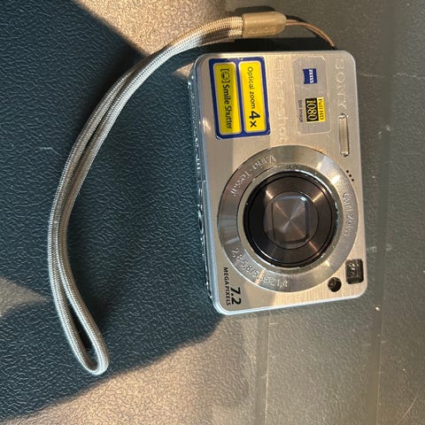 Sony Cyber-shot digitalkamera med 8.1 megapiksler oppløsning. Kameraet har et Carl Zeiss objektiv og er i svart farge.