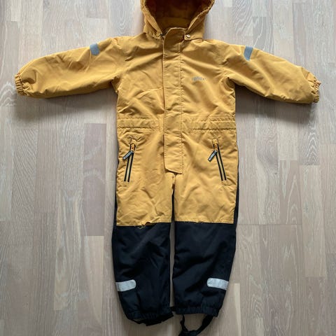 Vinterdress fra Reflex i størrelse 98 cm (ca. 3 år) stor i str. Dressen er godt brukt og har noe misfarging i stoffet, samt kosmetisk slitasje med hull på kne som ikke er gjennomtrengt. Det er også hull/slitasje på bena, men kun i ytterstoffet, isolasjon og innside er hel, og dette kan enkelt lappes. Strikk ved ben fungerer som den skal.