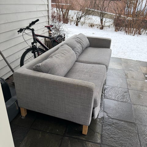 Sovesofa med sjeselong og oppbevaring - Gratis!