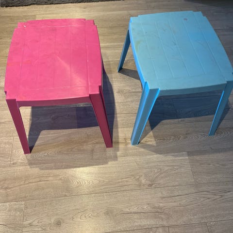 IKEA høy barnestol i hvit plast med metallben. Inkl bord