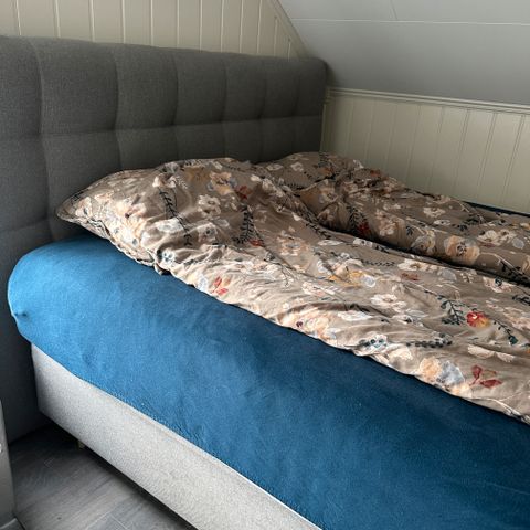 Mørk grå sengegavl selges billig. Ingen synlige bruksmerker. Kan stå på gulvet bak sengen. Til 180-seng. Utgått av produksjon.