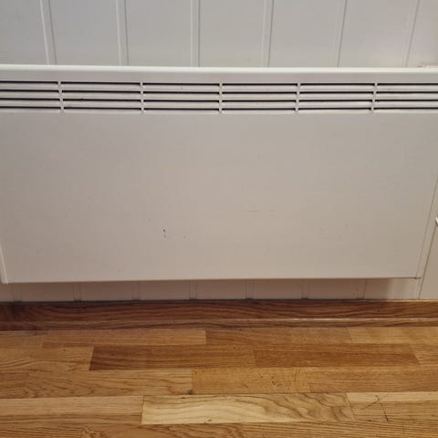 Rosa panelovn på 600w, med veggfeste. Pent brukt og fungerer fint, må hentes.