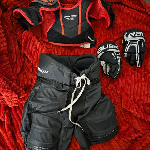 Selges masse ishockey utstyr siden gutten min sluttet på ishockey. Storrelse tilpasser ca til junior høyde 170 cm. Selges billig (50-100 kr per plagg/utstyr eller kom med tilbud). Gjerne alt samlet. Skal ikke sende. Bør i Landås.