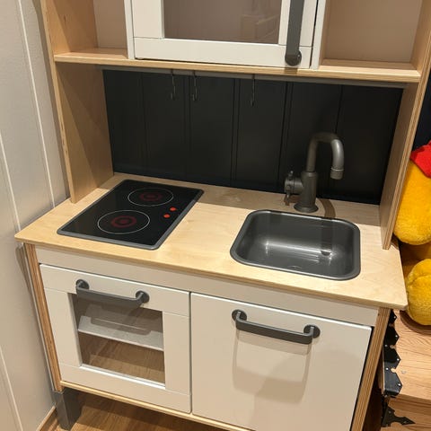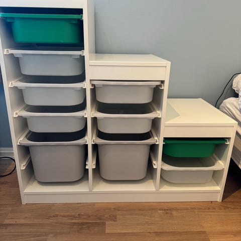 IKEA Trofast barneoppbevaringsmøbel med oransje og gul plastkasser