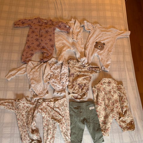 Hele og pene klær fra newbie, brukt til ett barn. Selges samlet. Str 56-62.