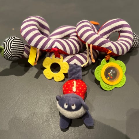 Nice toy, can be used on a baby gym and on a trolly, used by one child.