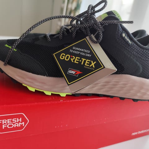 En veldig god og behagelig joggesko. Jeg har brukt de ganske mye til løping og gåing for en del år siden. Så de er brukt en god del men ikke noe spesiell slitasje noe sted. Har fått en sort flekk på venstre skoen- lite synlig ved bruk. Se bilder.