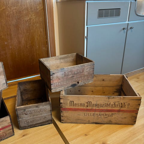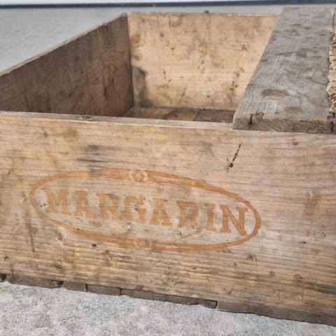 Herlig vintage kasse fra Mesna Margarinfabrikk i Lillehammer. Må vel være minst 70-80 år gammel. I svært god stand for alderen. Selges uten innholdet :)