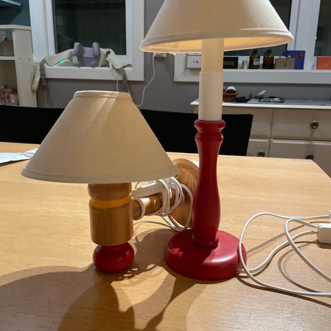 Lampen har lys med justerbar styrke og en fleksibel arm.