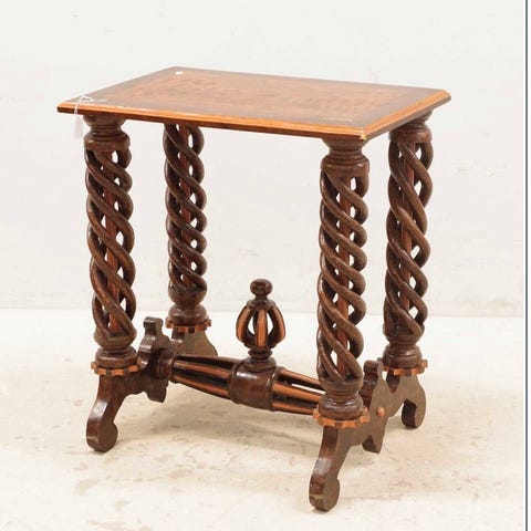 Retro hvitmalt sidebord / pidestall i tre, med fine utskjæringer og detaljer.