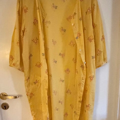 Fin kjole i løstsittende badedraktstoff. Fin til stranda. Fine farger: gråblå, sort og hvit.