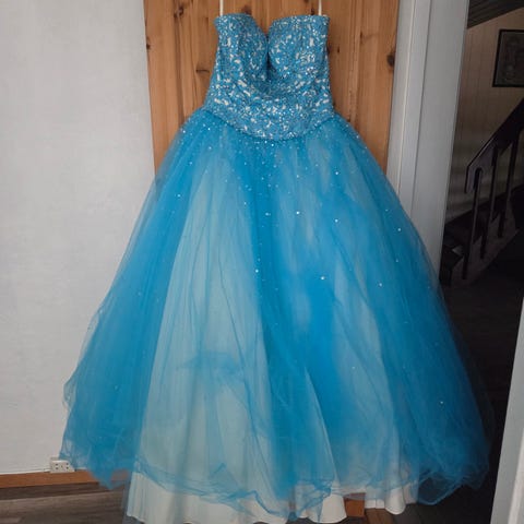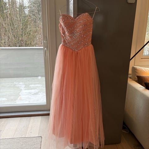 Selger ballkjolen min som er brukt to ganger. Størrelsen er 34, men passer small til medium. Jeg er 161 cm høy.💕